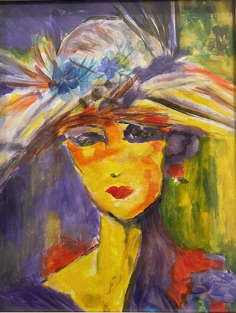 Bold, bright, and unapologetically stylish — this portrait celebrates the theatrical glamour of Melbourne Cup Day. The woman, adorned in a sweeping, feathered hat crowned with blue flowers, exudes confidence and mystery. Her face is painted in vivid strokes of gold, crimson, and violet, capturing both the festive energy and fashionable spirit of the day. This piece is less about realism and more about attitude — a tribute to expressive beauty, individuality, and the art of dressing up. A celebration of color, character, and the spectacle that is race day.